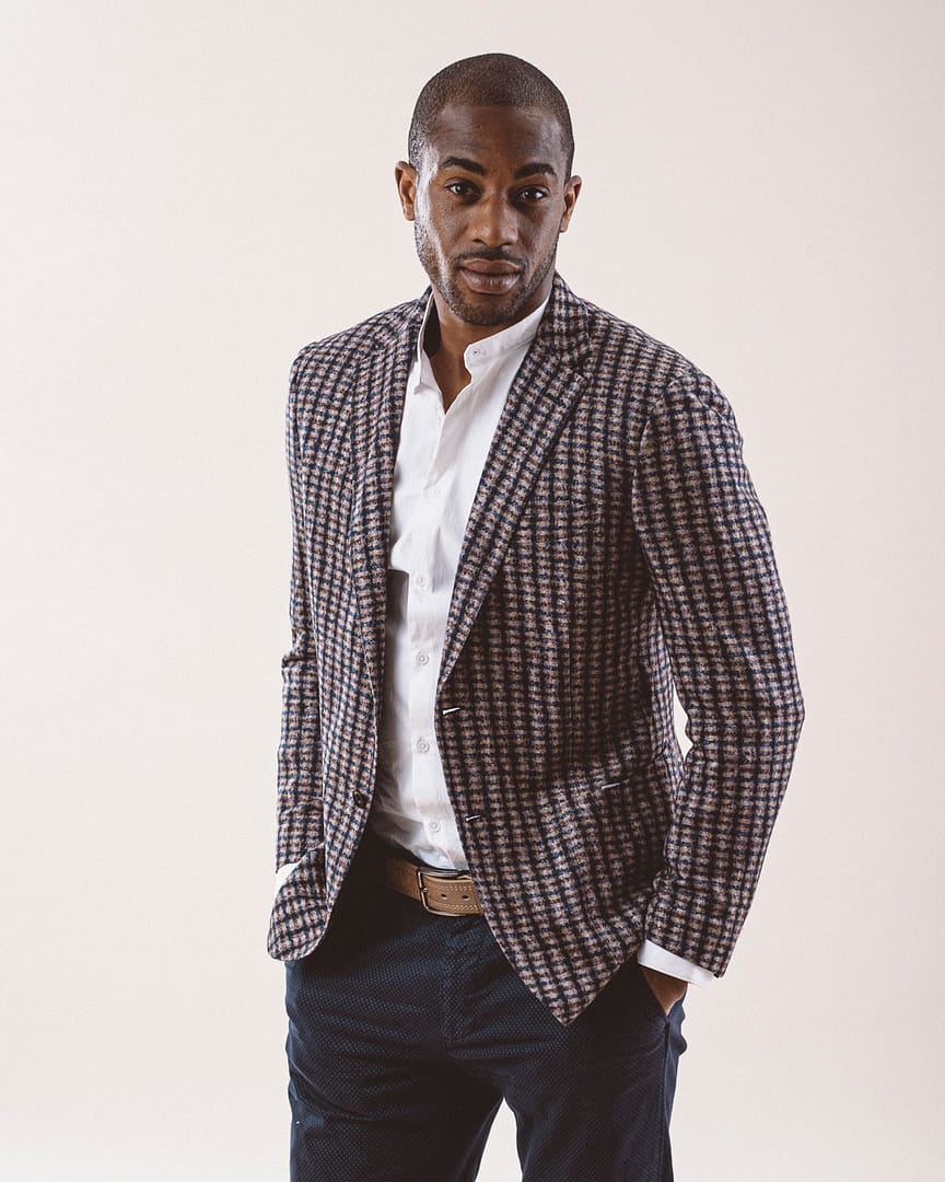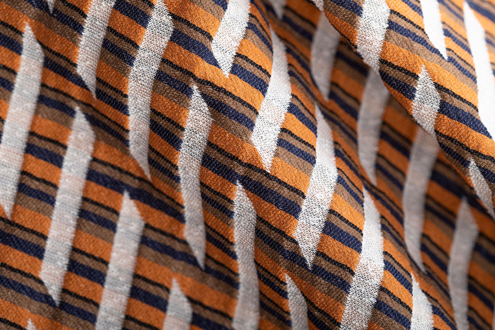 Contemporary, eclectic and unconventional menswear collection using innovative yarns, original blends and new techniques for ultra-lightweight printed fabrics with three-dimensional effects and provocatively designed jacquards.