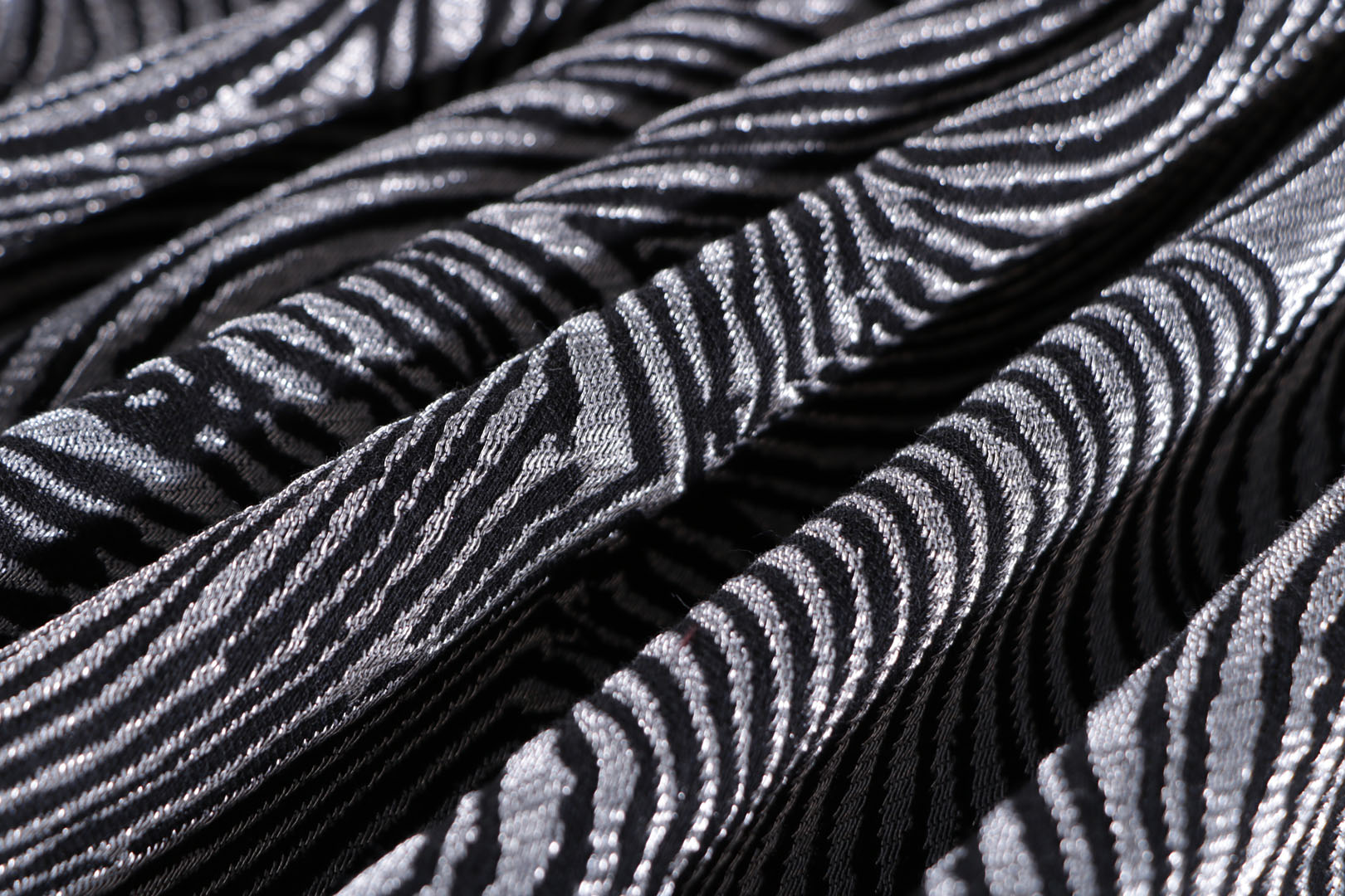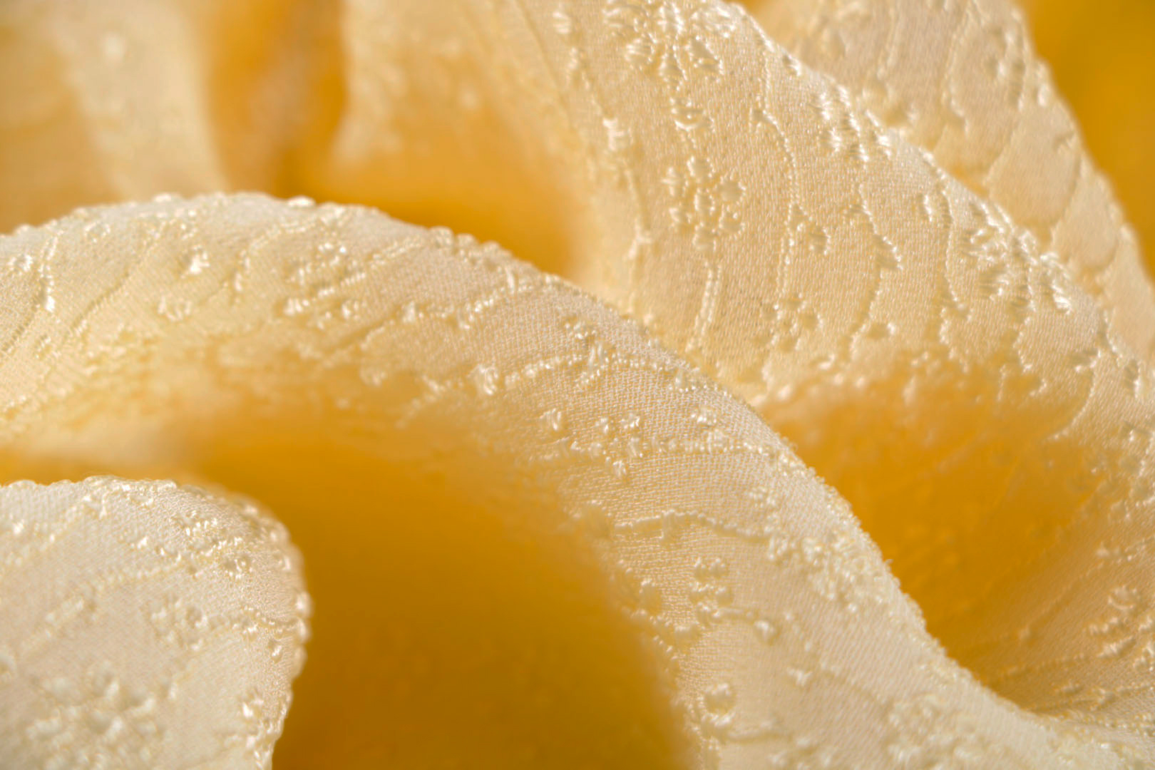 Our jacquard patterns and qualities showcase a diverse array of weights and structures, offering a wide variety of options: from mirelle jacquards with gauzy motifs to rich brocades intertwined with bouclé yarns, fluid lurex geometries, and organzas that appear intricately carved.