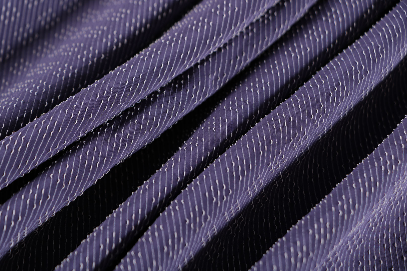 Our jacquard offerings include English round coat fabrics made of silk and cotton dyed in yarn, as well as double quilted fabrics with one side in nylon and the other in wool.