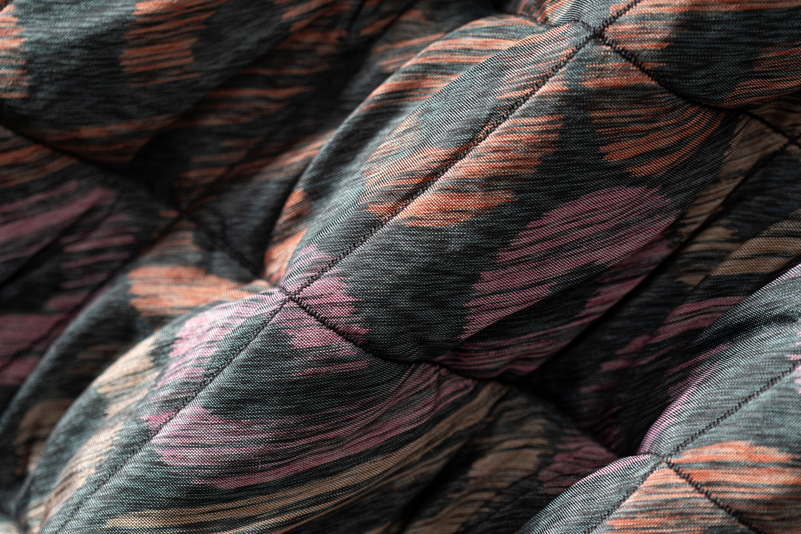 Prints are offered on multiple bases, from a particular wool and cotton fur, to a melange jersey velvet in nylon cotton.