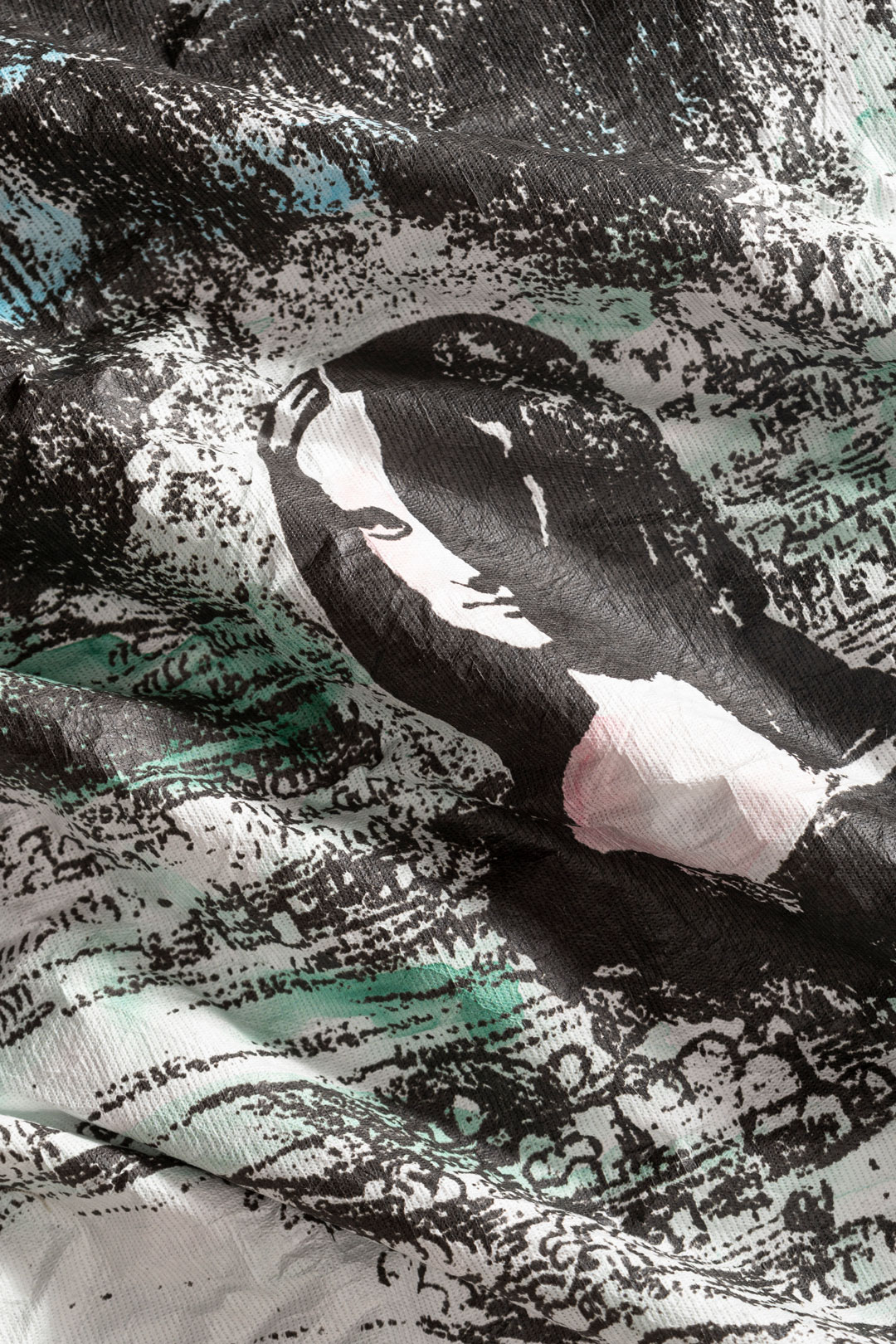 For the outwear proposal we have a printed tyvek coupled with a cotton jersey, suitable for reversible kways, and compact and beaten cottons, where we have prints with a three-dimensional effect to the touch.