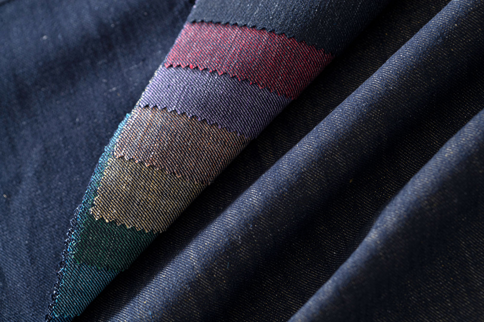 In TEX HOMME, the denim proposal focuses on provocation: making denim out of pure silk thread. Thus geometric jacquards and classic twills are proposed on a silk chain woven in linen and cotton.