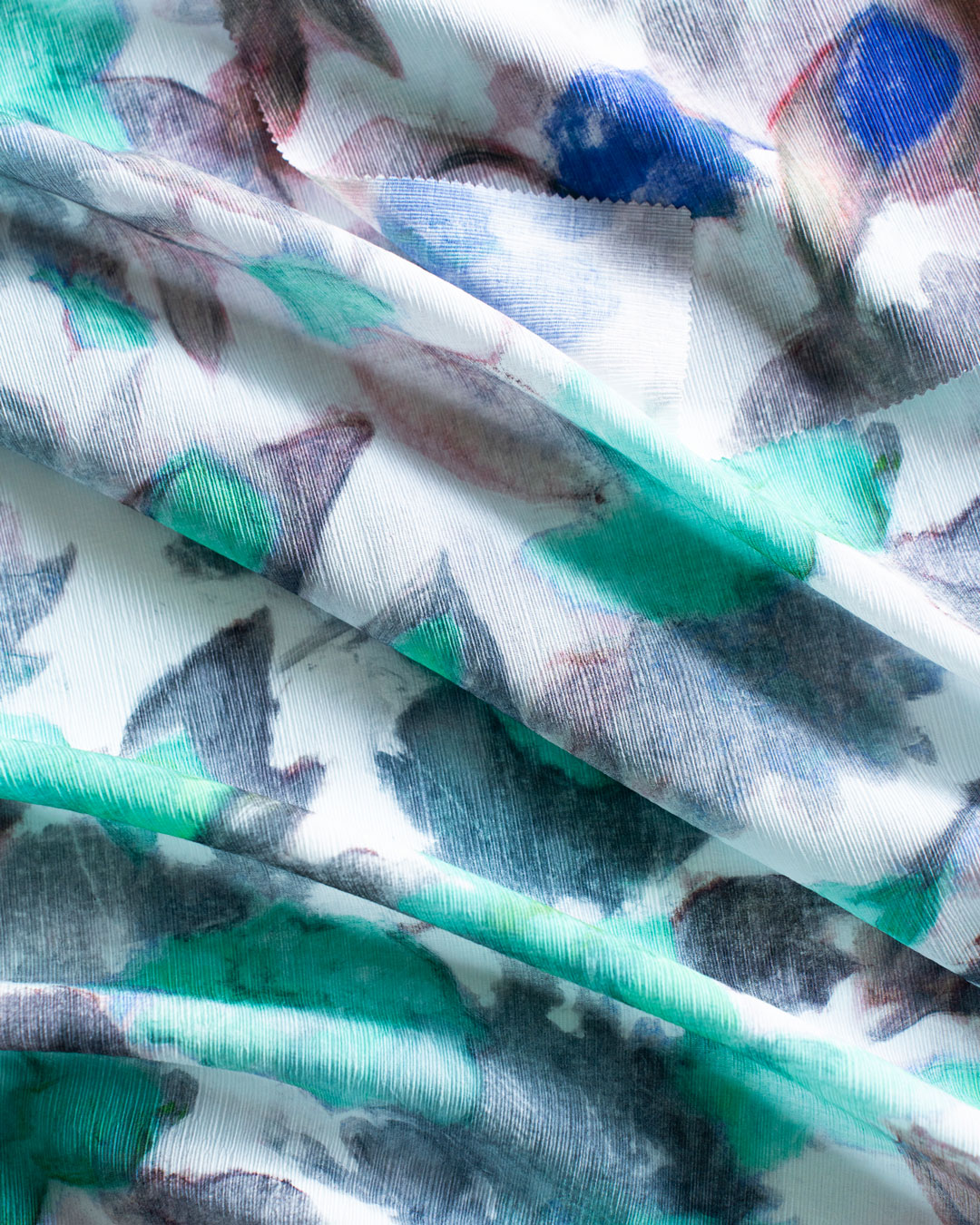 The Grand Soirée selection is a showcase of elegance, refinement, and sophistication. Techniques include triple-layer silk and cotton organzas with devoré effects that create dynamic transparencies and movement. Organza fabrics, crinkled with panel-printed designs featuring cloqué effects, evoke the ethereal lightness of classic ballerina tutus. Additional luxurious elements, such as lamé-edged organzas with pigment prints, deliver a stunning glass-like finish.