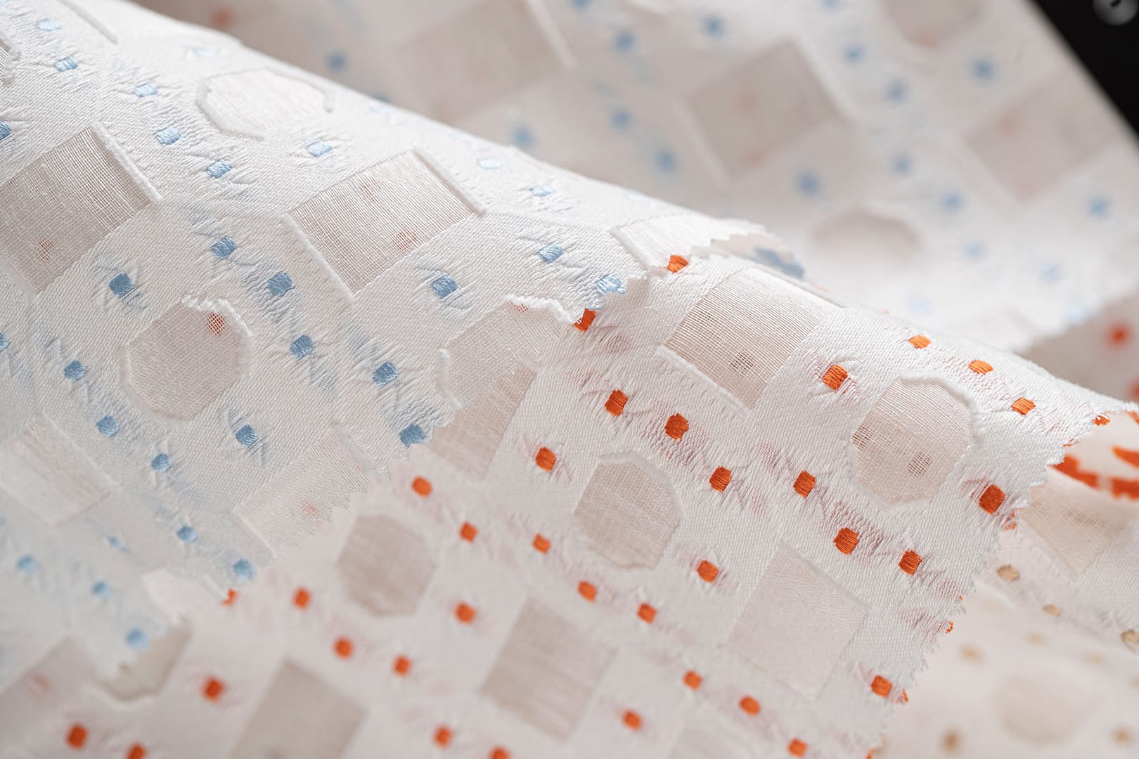 Une collection tendance pour le marché du prêt-à-porter, combinant des tissus classiques et contemporains, privilégiant les fils naturels ou techniques pour un rendu moderne et contemporain.