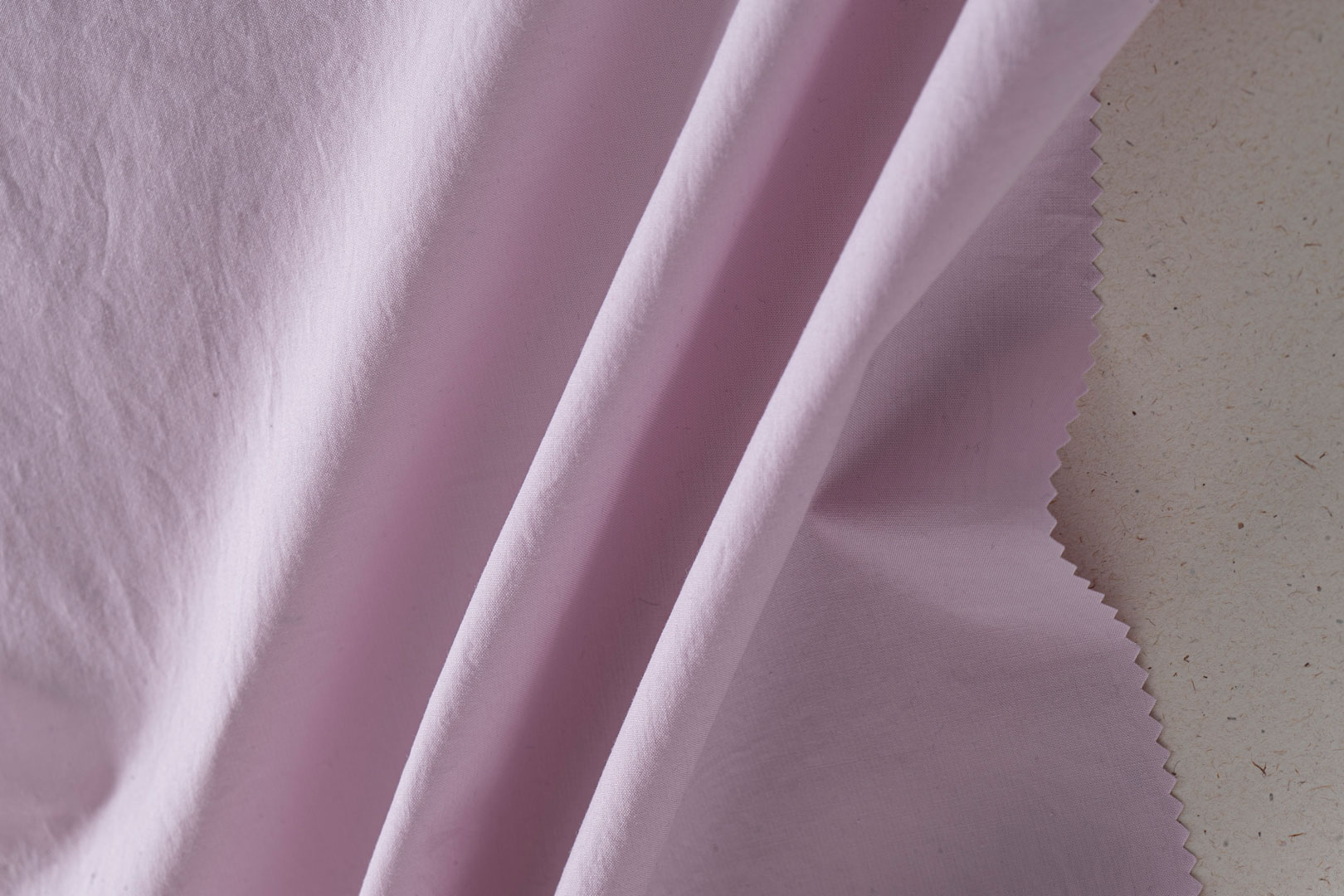 The part of piece-dyed plain fabrics is composed of washed cupro, blended with cotton and linen.