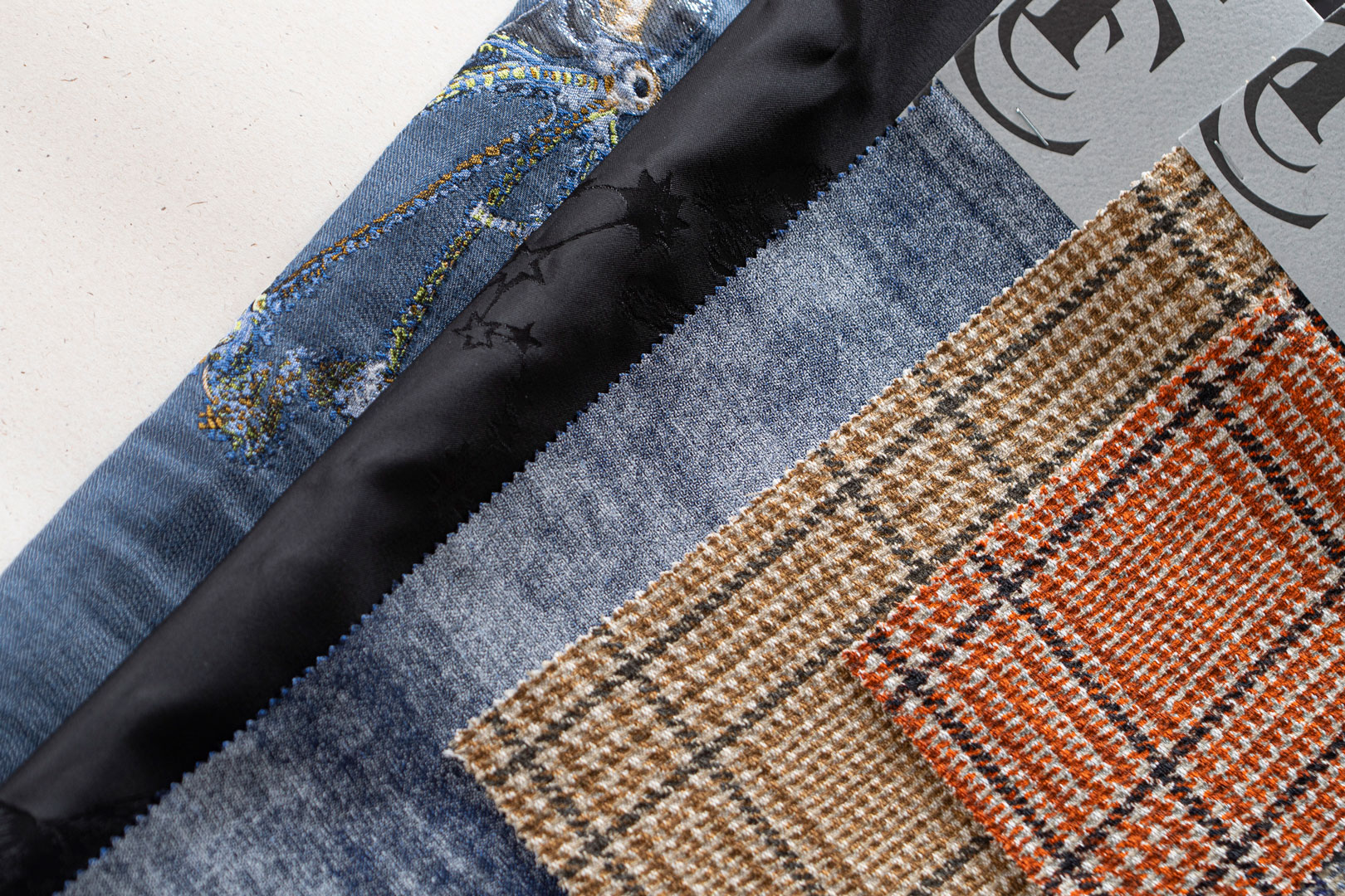 We also offer a small selection of prints on cotton bases with a strong denim propensity.