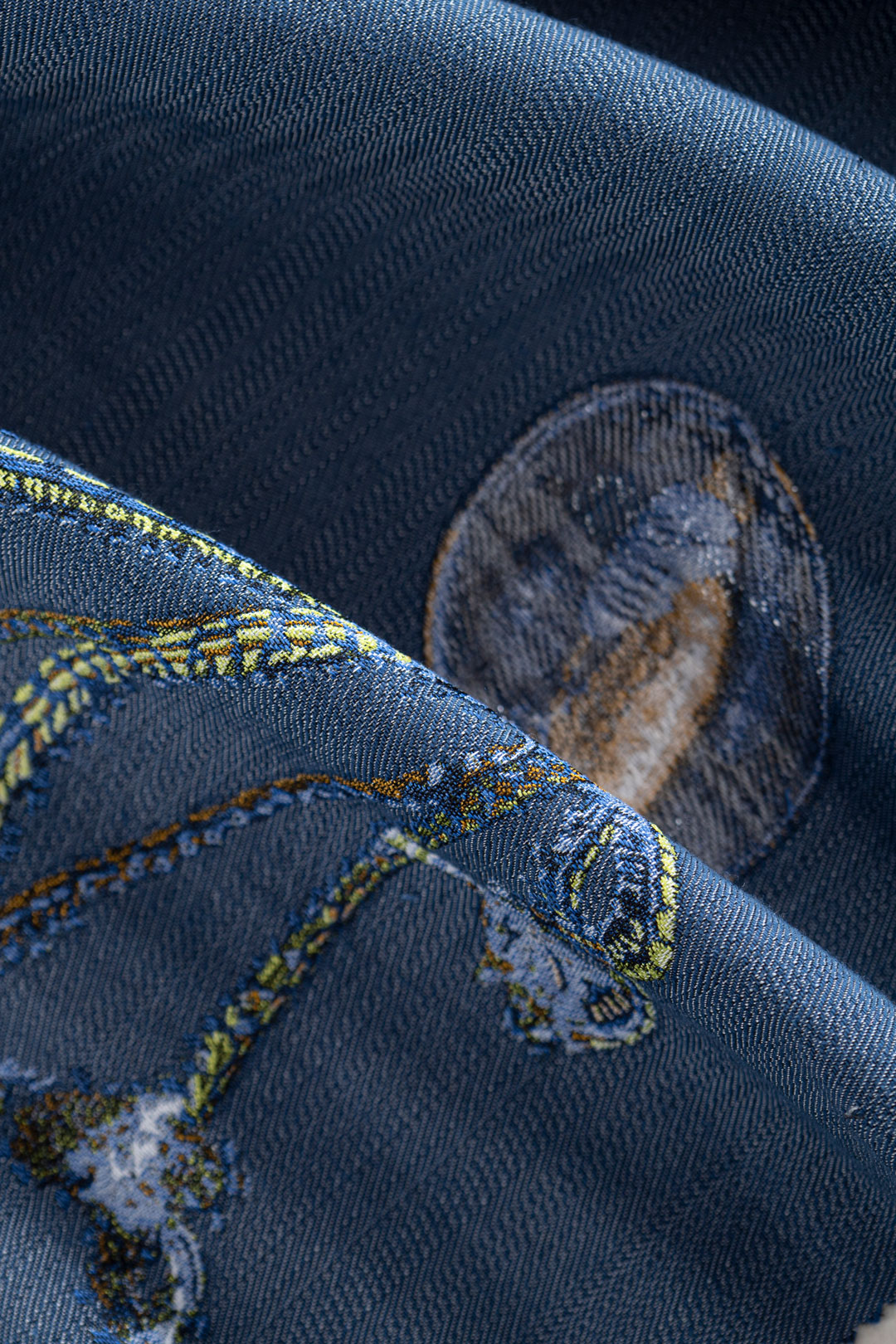 In TEX HOMME, the denim proposal focuses on provocation: making denim out of pure silk thread. Thus geometric jacquards and classic twills are proposed on a silk chain woven in linen and cotton.