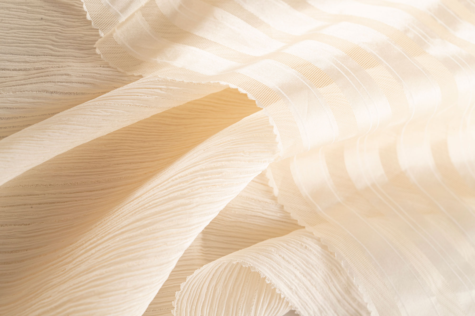 - un’estetica minimal e sofisticata, applicata a tessuti dai pesi molto leggeri e fluidi, quali organze con piccoli check, duchesse con disegni a intarsio, georgette coquet;