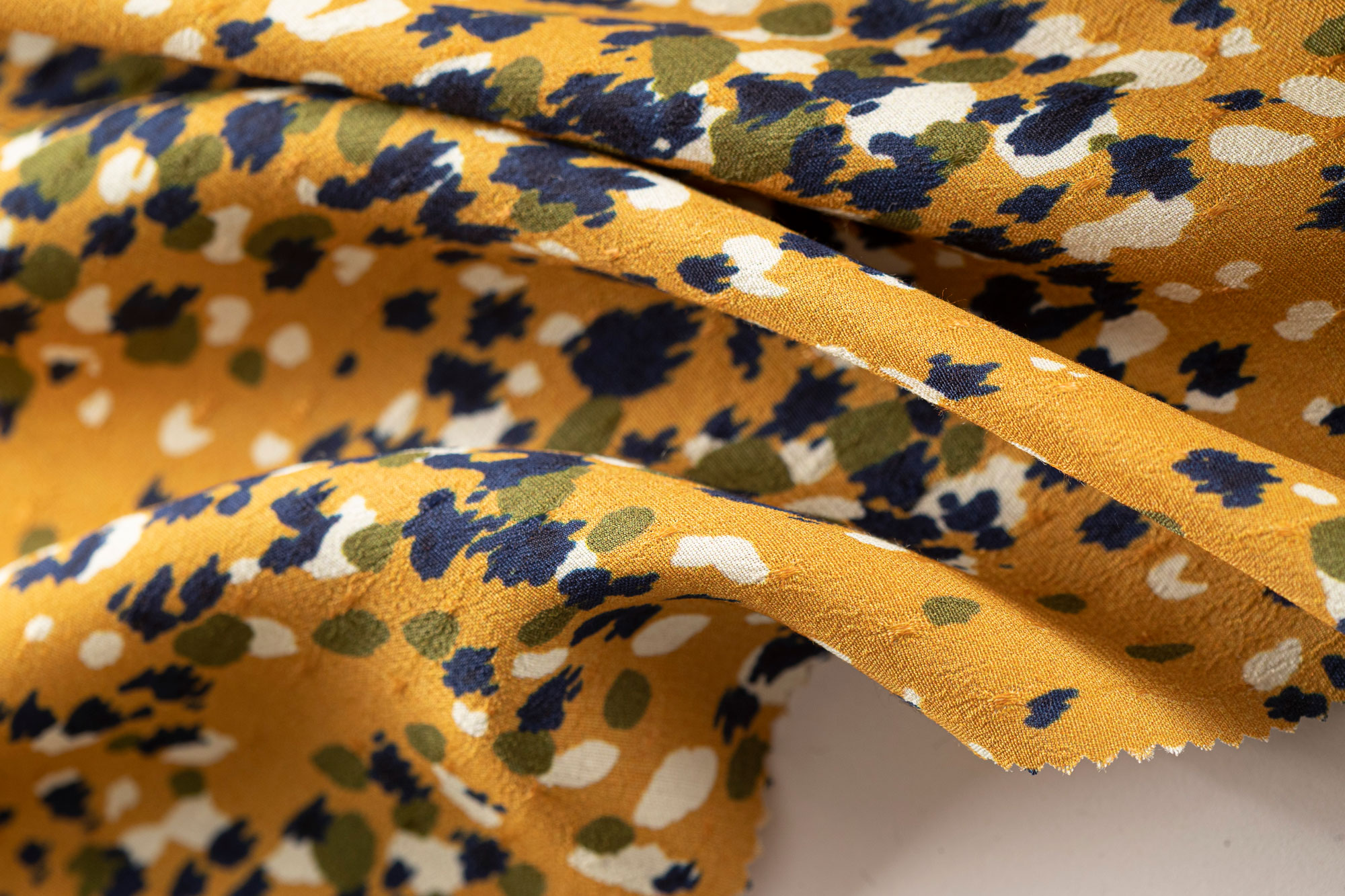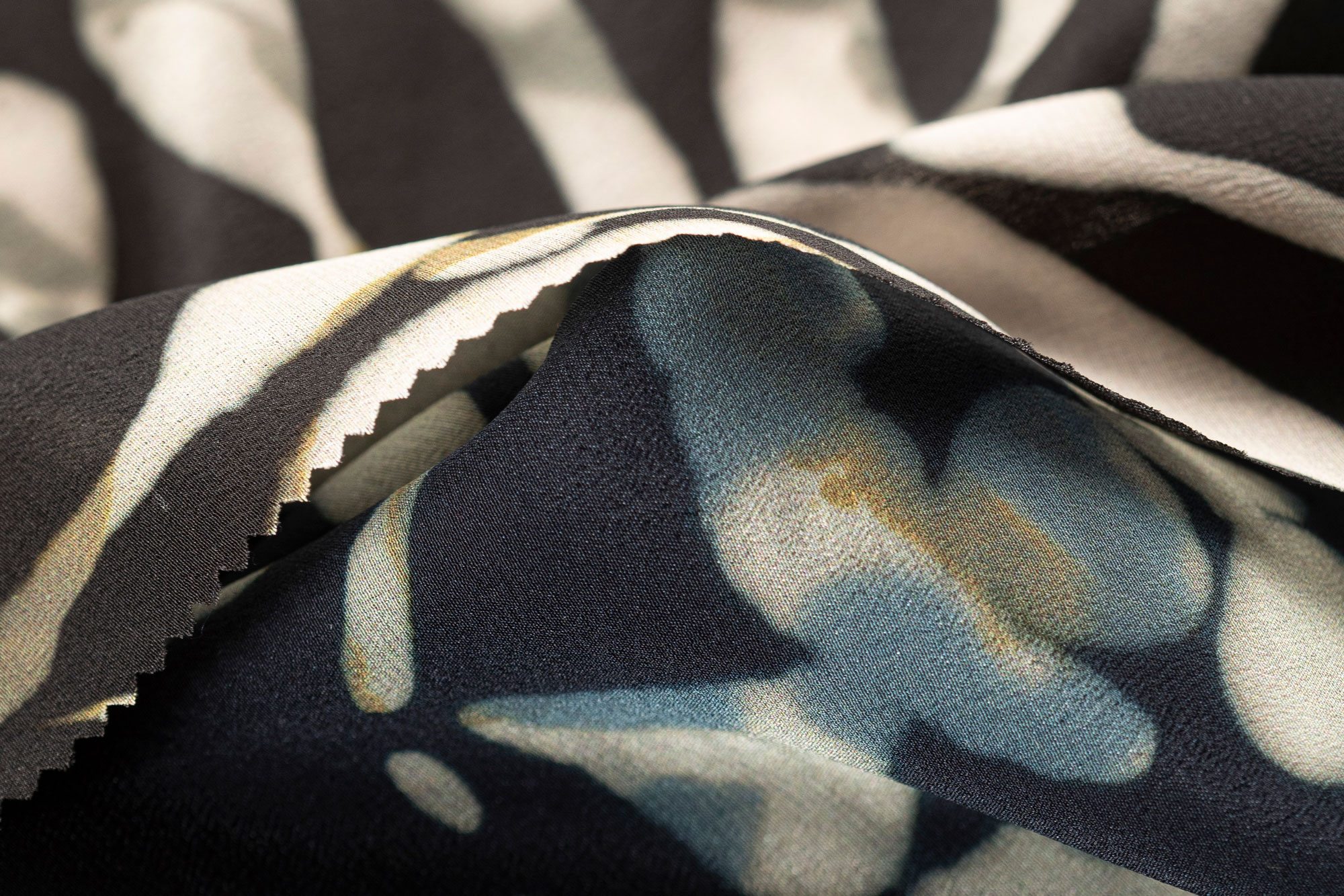 L’eccellenza dell’alto artigianato tessile di Clerici Tessuto trova la sua piena rappresentazione nei velluti pesanti e in quelli di georgette di seta, con disegnature estremamente femminili e dai toni sofisticati.