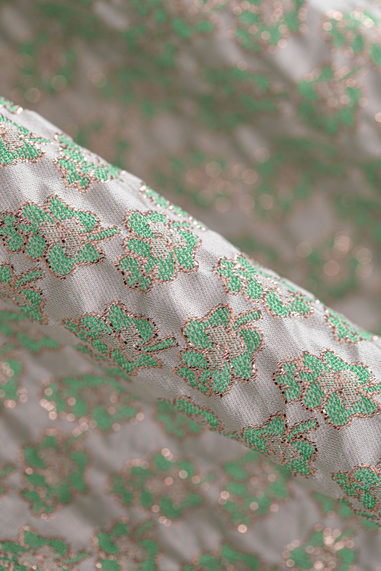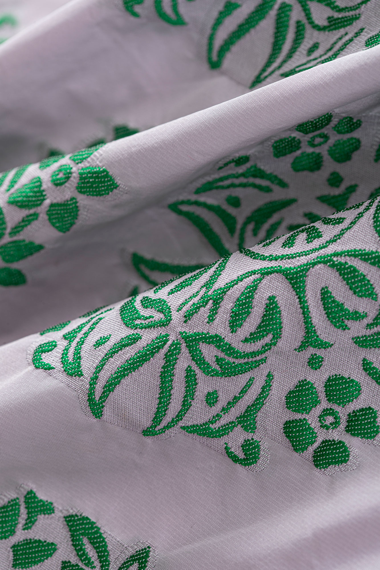 Clerici Tessuto si presenta aerea e trasparente, sia nella parte stampa che in quella jacquard dove i fondi