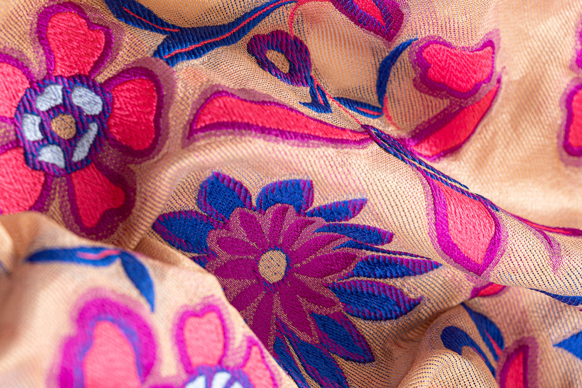 Nella parte stampa la ricerca si concentra su applicazioni di pigmenti spessorati per tecniche materiche su basi più corpose in cotone e lino. La parte seta si apre anche nella struttura con una serie di garze organza aeree e traforate. Le disegnature sono floreali declinate dal romantico al geometrico, dettagliati e pittorici.