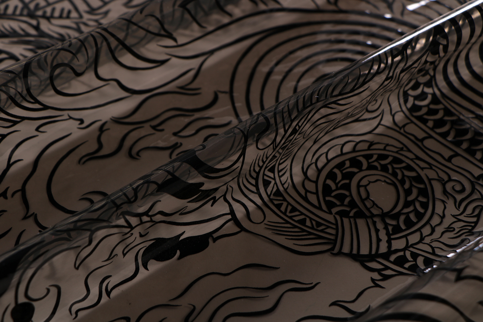 Nella collezione troviamo tessuti trasparenti in poliuretano con stampe grafiche tridimensionali, effetti jacquard in base etamina di cotone che ricordano le geometrie dei monumenti di quelle terre. Colori caldi e intensi, finissaggi che donano ai tessuti mani morbide e fluide.