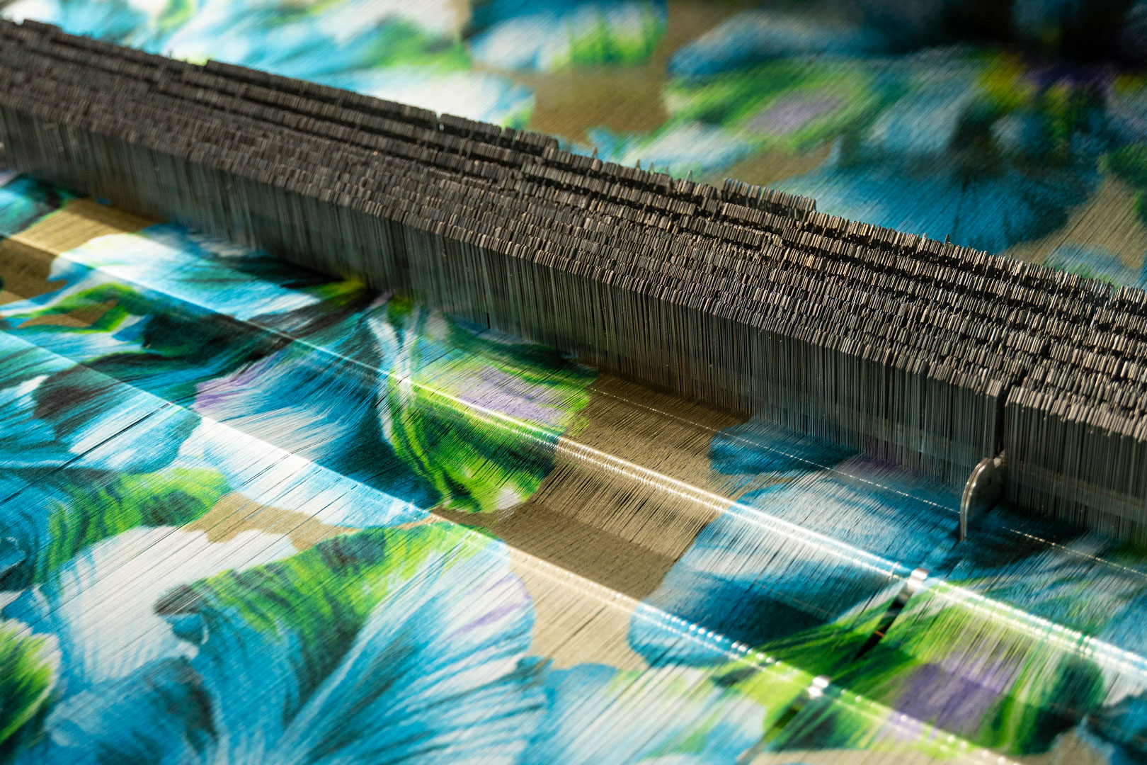 Per enfatizzarne il valore creativo, ciascun tessuto è stato incorniciato come un’opera d’arte da un decoro che richiama i motivi presenti sulle antiche macchine da cucire, riprodotti sulle superfici con tecniche come l’innovativo taglio laser, oppure ricami e lavorazioni integrate nel tessuto stesso.