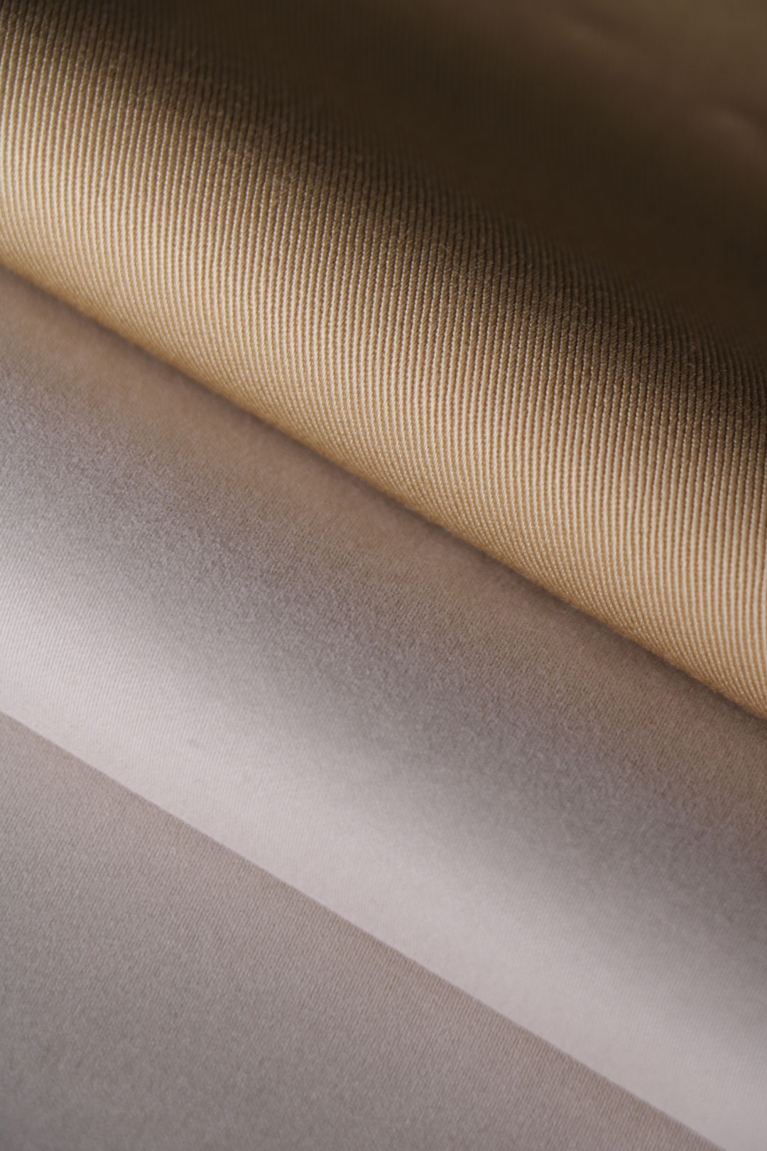 Completano la collezione incursioni nel mondo moda: lane stampate e sovrattinte per trench dal carattere deciso, e lavorazioni tecniche come l’applicazione di pellicole su basi cotoniere, pensate per outerwear dal gusto contemporaneo.